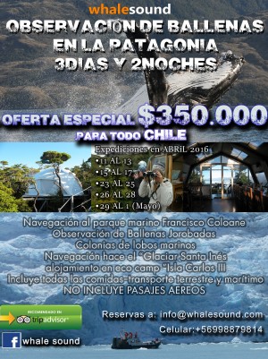 Whalesound cuenta con un programa único que consta en 3 días & 2 noches en sistema de todo incluido a $350.000 por persona, incluye transporte terrestre y marítimo, alimentación durante todo el viaje, alojamiento en el eco camp en la isla Carlos III, charlas científicas, navegaciones y vuelta a su hotel. Nuestro destino es la isla Carlos III, situada en una remota área dentro del parque marino Francisco Coloane.