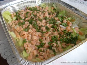 cebiche de salmón, corvina, mixto, 19000$ el ciento.mas 100 tacitas comestibes