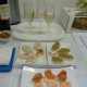 100 canapé especial 9500$ camarón, centolla, salmón, salame con cibole, palmito con cibole.