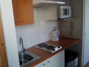 Kitchenette Equipada, Frigobar, MicroondasLCD, Hervidor electrico, Vajilla para dos personas